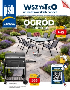 Grill węglowy z żeliwnym rusztem wym. 107 x 46 x 106 cm, ruszt regulowany, wysuwana taca na popiół Zestaw tarasowy 6 krzeseł + stół o wym. 120 x 90 cm Cena z aplikacją Moja Mrówka cena bez aplikacji 369 333 zł/szt. Cena z aplikacją Moja Mrówka cena bez aplikacji 699 639 zł/zest. w mistrzowskich cenach POBIERZ APLIKACJĘ MOJA MRÓWKA I KUPUJ TANIEJ Oferta dostępna w wybranych sklepach PSB Mrówka od 23.04 do 02.05.2026 r. lub do wyczerpania zapasów. spotkań OGRÓD